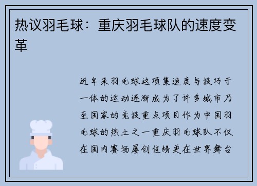 重庆乒乓球队的崛起:基础扎实与潜力无限 近年来,重庆乒乓球队逐渐成为全国乒坛不可忽视的力量。在这片充满火热体育氛围的城市中,乒乓球不仅仅是一项运动,更成为了文化的一部分。从青训系统到专业队伍,重庆不断优化资源配置,打造出一套具有地方特色又符合国际标准的培养体系。 重庆在青少年培养上投入巨大。众所周知,卓越的运动员来源于扎实的培养基础。重庆市体育局与多所本地知名体育学院合作,建立了高效的青少年训练营...